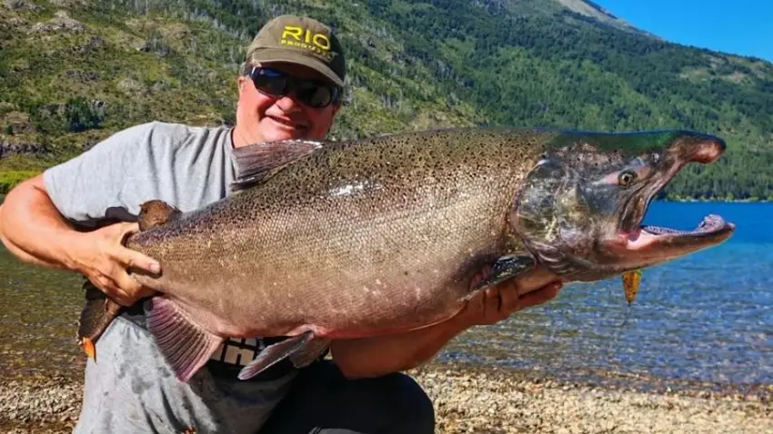 Lago-puelo Capturan salmón Chinook récord de más de 18 kilos en El Desemboque, Lago Puelo Un salmón Chinook de gran tamaño fue pescado tras una intensa lucha de hasta 25 minutos, superando en dos kilos la marca anterior en la región de la Comarca Andina.