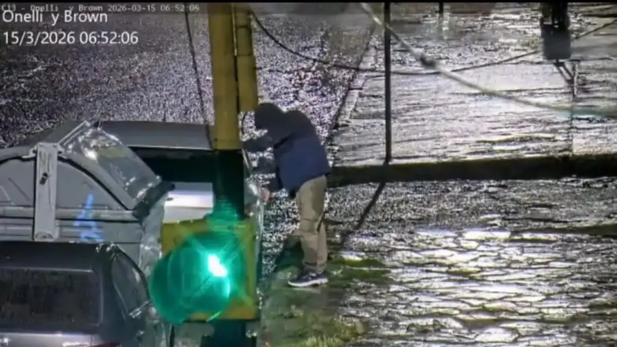 Según se pudo advertir en las imágenes, el sospechoso —un hombre mayor de edad— manipulaba el vehículo con aparentes intenciones de abrirlo. Vestía una campera negra y azul con capucha, pantalón marrón y zapatillas negras. Ante la situación, el operador mantuvo la vigilancia del sector y dio aviso inmediato al personal policial.