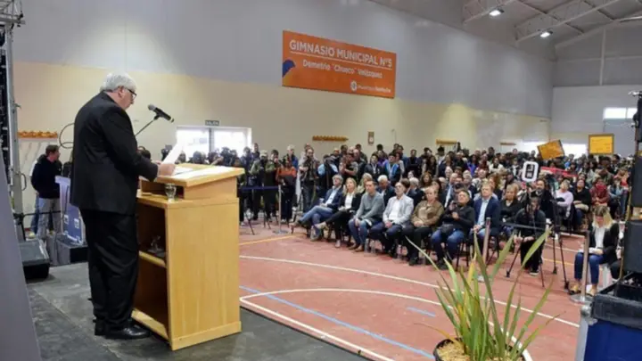 Durante la mañana de este lunes se realizó el acto de Apertura de Sesiones Ordinarias del Concejo Deliberante en el Gimnasio Municipal N°5, ubicado en el km 13 de Avenida Bustillo. La jornada contó con la presencia de concejales, integrantes del Tribunal de Contralor, delegados, secretarios y subsecretarios, junto a la totalidad del equipo de gobierno, además de presidentes y presidentas de juntas vecinales, representantes de clubes e instituciones, y vecinos.