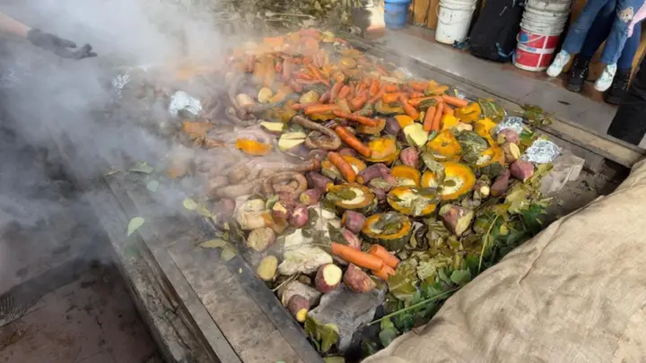 El instante más emocionante de la jornada fue, sin dudas, el “destape del curanto”, cuando retiraron las capas de tierra y hojas para revelar la comida ya lista. El aroma y la expectativa del público marcaron un momento de celebración compartida que arrancó aplausos y entusiasmo entre los presentes.