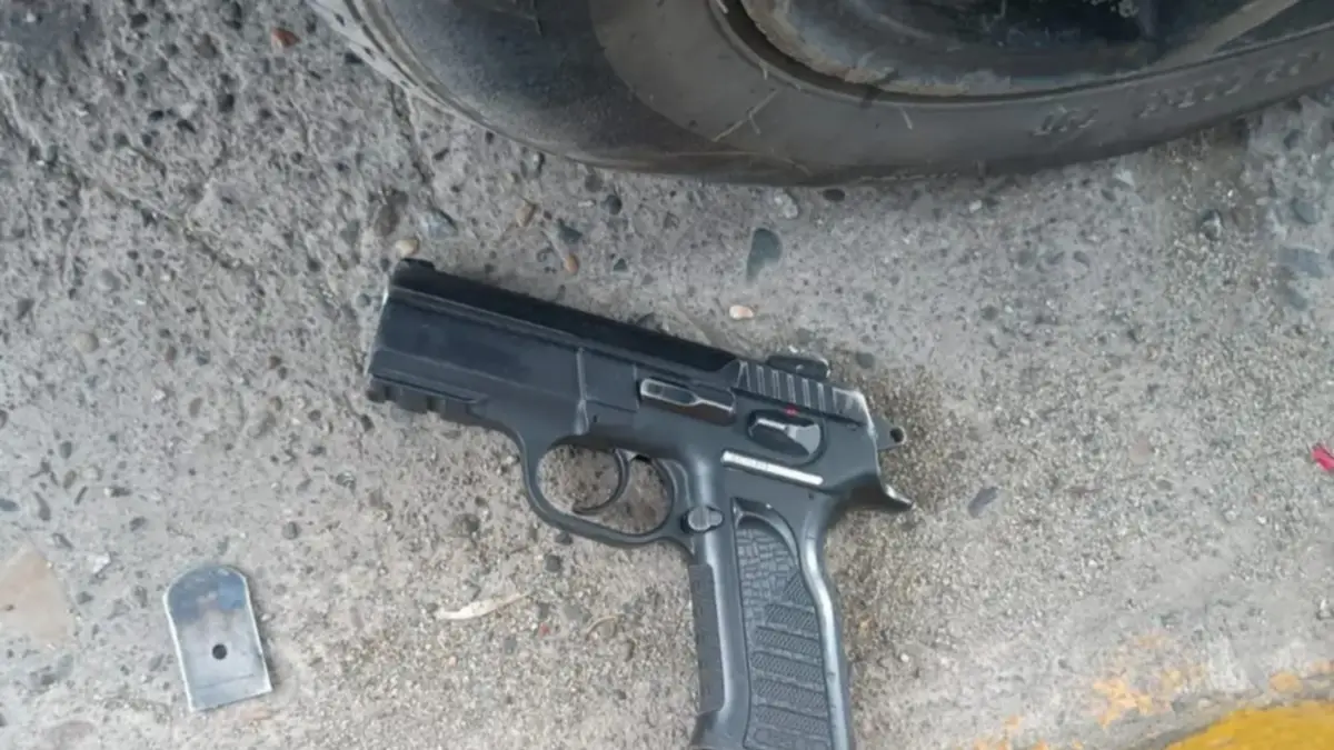 El vehículo involucrado sufrió daños materiales, aunque su conductor resultó ileso. Tras el choque, uno de los hombres perdió el control de lo que llevaba encima: un arma de fuego calibre 9 milímetros, que quedó a la vista del personal policial.
