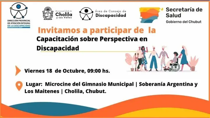 El Consejo de Discapacidad de la Municipalidad de Cholila ha anunciado una capacitación sobre perspectiva en discapacidad, destinada a fortalecer la comprensión y el respeto hacia las personas con discapacidad. El evento, programado para el viernes 18 de octubre a las 9:00 horas, se realizará en el microcine del Gimnasio Municipal, ubicado en la esquina de Soberanía Argentina y Los Maitenes, en Cholila.