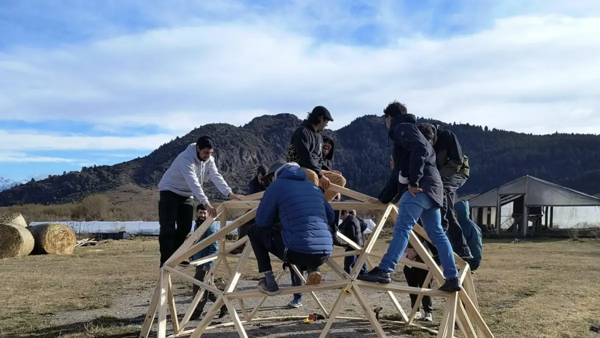 Este lunes 26 de mayo se realizó en Cholila una capacitación sobre domos geodésicos, organizada por las Secretarías de Producción y Turismo de la Municipalidad, con una destacada participación de vecinos y vecinas interesados en la construcción sustentable.
