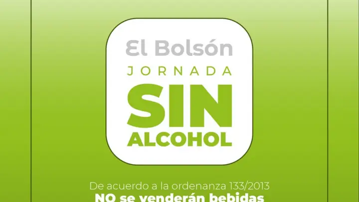 La Municipalidad de El Bolsón recordó que este fin de semana se llevará a cabo la tradicional Jornada Sin Alcohol, en el marco de la ordenanza 133/2013. La actividad comenzará el sábado 31 de enero a las 8 de la mañana y se extenderá hasta las 8 de la mañana del domingo 1 de febrero.