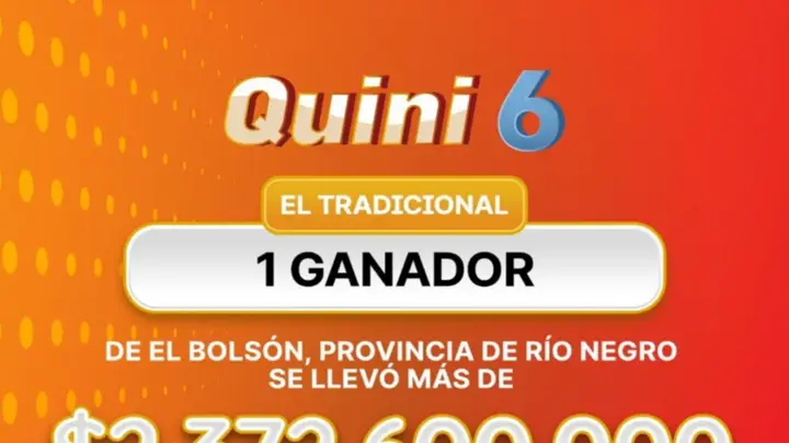 Un vecino de El Bolsón se adjudicó el pozo del Quini 6 en la modalidad “Tradicional Primer Sorteo”, que alcanzó más de $2.372.600.000. El nuevo millonario compró su ticket en una agencia local y acertó los números 11-29-36-39-42-43.