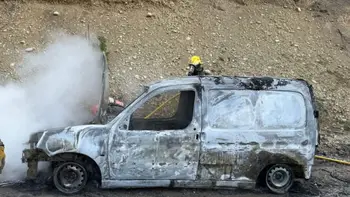 Este lunes por la tarde, una camioneta Citroën Berlingo sufrió la pérdida total tras incendiarse en la Ruta Provincial 6, en la zona de Cuesta del Ternero, a unos 3 kilómetros del cruce con la Ruta Nacional 40.