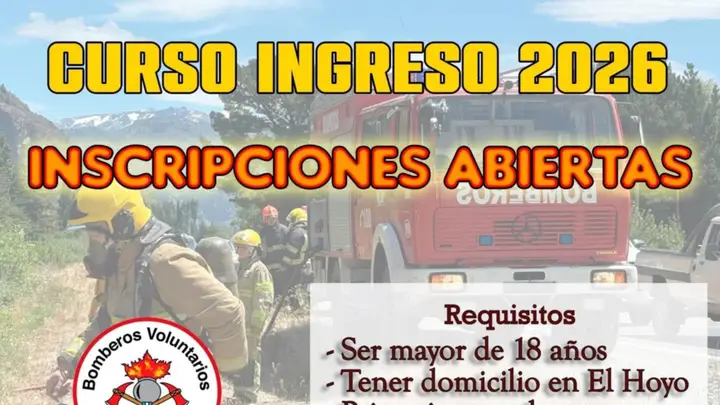 El Cuartel de Bomberos Voluntarios de El Hoyo anunció la apertura de inscripciones para un nuevo curso de aspirantes, invitando a vecinos y vecinas a sumarse a la formación y compromiso comunitario que caracteriza a la institución.
