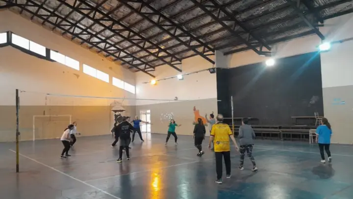 El Newcom, disciplina deportiva derivada y adaptada del vóley, está orientado a adultos mayores y consiste en lanzar y atrapar el balón sin que pique en el suelo, con un máximo de tres pases por equipo.