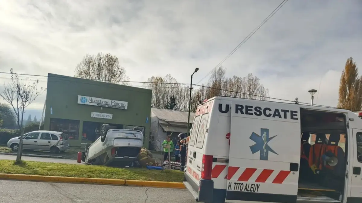 n incidente vial ocurrido este lunes alrededor de las 10:40 generó una rápida movilización en El Hoyo, cuando dos vehículos colisionaron a pocos metros del Cuartel de Bomberos Voluntarios, dejando a uno de ellos volcado sobre la calzada.