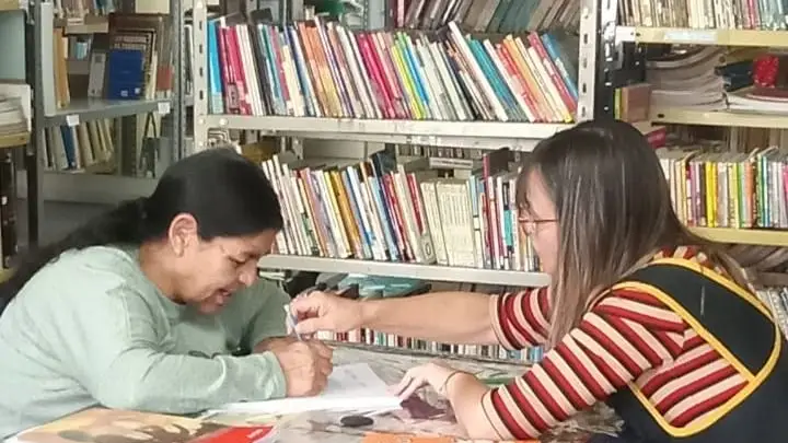Desde la biblioteca compartieron con orgullo algunas imágenes del inicio de esta nueva etapa para Carmen, quien practicó la letra cursiva y escribió, con dedicación y emoción, el nombre de sus hijos. Un gesto sencillo, pero cargado de sentido.
