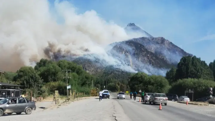 El incendio forestal de Puerto Patriada avanza sobre el faldeo del cerro Pirque, en dirección al sector de El Pedregoso, lo que generó este jueves por la tarde una situación crítica en la Comarca Andina y derivó en el corte total de la Ruta Nacional 40.