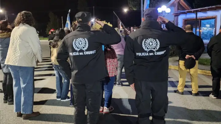 Durante la vigilia se proyectó material audiovisual alusivo, y el instante más emotivo llegó a la medianoche con el izamiento de las banderas Nacional y Provincial. Luego se entonaron el Himno Nacional, el Himno del Chubut y la Marcha “Malvinas Argentinas”, seguido del encendido de velas en homenaje a los caídos.