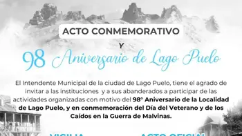 A las 11 horas, también el jueves, se llevará adelante el Acto Oficial por el 98° Aniversario de Lago Puelo, junto con la ceremonia en homenaje a los Caídos y Veteranos de Malvinas, en la Casa de la Cultura.