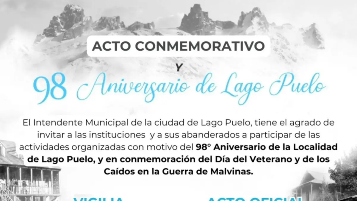 La Municipalidad de Lago Puelo anunció una serie de actividades oficiales para los días 1 y 2 de abril, en el marco del 98° Aniversario de Lago Puelo y la conmemoración del Día del Veterano y de los Caídos en la Guerra de Malvinas. La agenda incluye espacios de memoria, actos protocolares y la apertura de un nuevo espacio cultural.