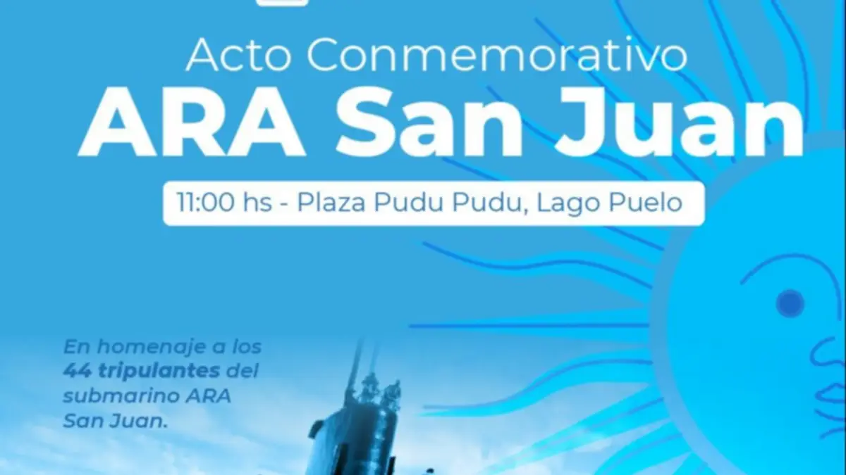 La Municipalidad de Lago Puelo invitó a vecinos y visitantes a participar del acto conmemorativo en memoria de los 44 tripulantes del submarino ARA San Juan, en un nuevo aniversario de su desaparición. La ceremonia se llevará a cabo este sábado 15 de noviembre a las 11:00 en la Plaza Pudu Pudu.