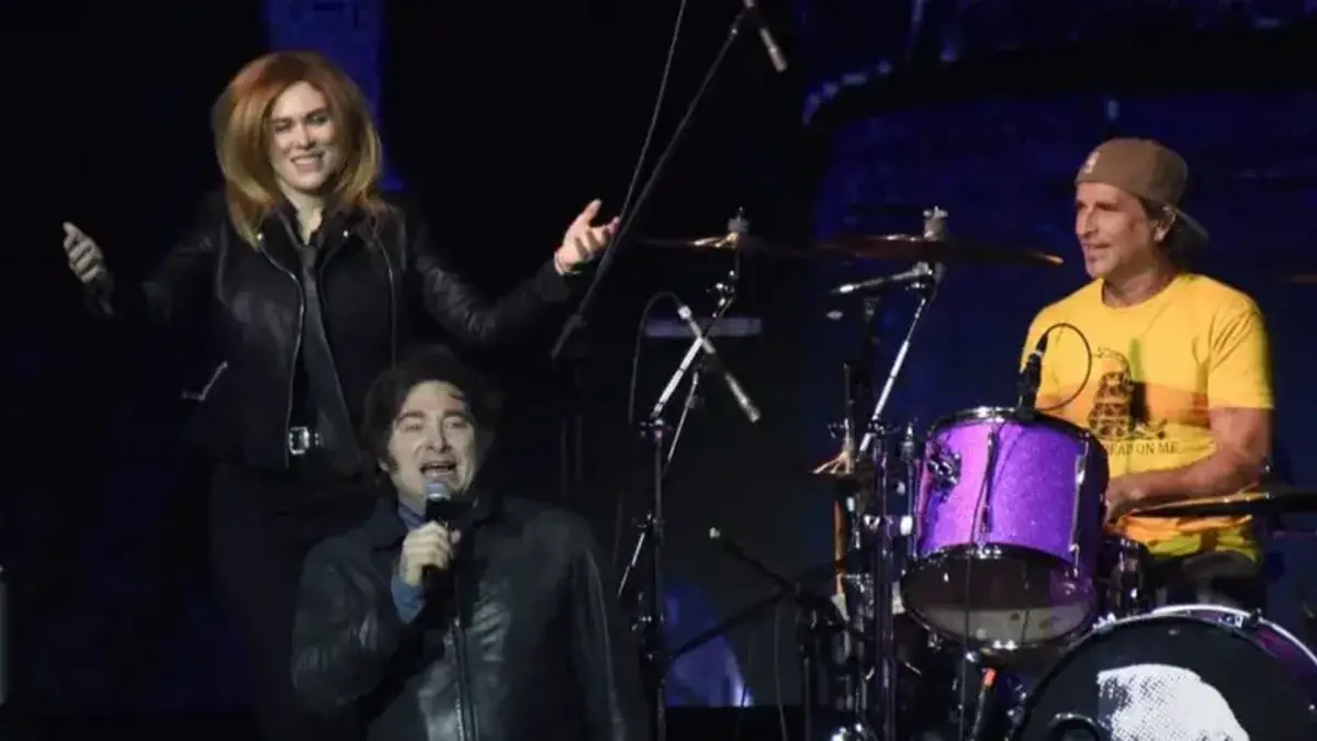 El presidente inició la velada con la interpretación de “Demoliendo Hoteles”, un clásico de Charly García. Vestido con un camperón de cuero negro, Milei subió al escenario y compartió un emotivo abrazo con su hermana Karina. En el show lo acompañaron Joaquín y Bertie Benegas Lynch en batería y guitarra, mientras que la diputada nacional Lilia Lemoine participó en los coros.