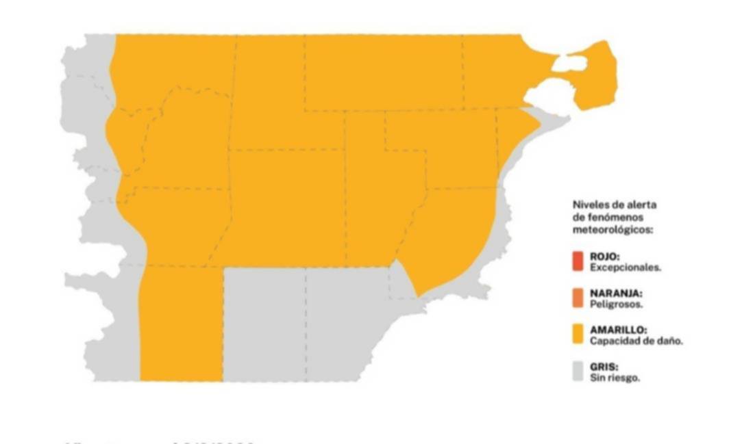 Según el organismo, las precipitaciones acumuladas oscilarán entre 10 y 20 milímetros, con posibilidad de superar esos valores en sectores puntuales. Además, se prevé que las tormentas vengan acompañadas de actividad eléctrica frecuente y ráfagas de viento que podrían superar los 60 km/h.