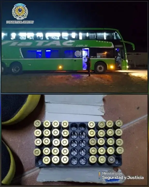 En una noche de **patrullaje preventivo**, la **Policía de Chubut** llevó a cabo una **captura inesperada** en **Tecka**. Mientras los agentes recorrían la zona, recibieron una **alerta** de un pasajero de un **colectivo** de la empresa **Viatac**, quien informó que otro pasajero estaba consumiendo **marihuana** en el baño. Una vez en la unidad, los policías identificaron al **sospechoso**, un hombre con las iniciales **Y.A.J.**, y al verificar su identidad en el sistema, descubrieron que tenía **diez órdenes de captura pendientes**. Pero eso no fue todo, al revisar su **bolso**, encontraron un **blíster** con **32 cartuchos de bala calibre 32** y una **petaca de alcohol**. El pasajero fue **detenido de inmediato** y trasladado a la **comisaría correspondiente**.