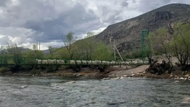 La nueva estructura, de 65 metros de largo y 1,10 metros de ancho, fue ejecutada por el Departamento Provincial de Aguas (DPA) con una inversión cercana a los $270 millones. Se trata de una pasarela peatonal suspendida, construida con materiales de alta resistencia, que reemplaza definitivamente al antiguo puente colgante. Los crianceros de la zona pueden volver a trasladar a sus animales sin riesgos, una tarea esencial para la subsistencia de las familias y el fortalecimiento del arraigo rural.